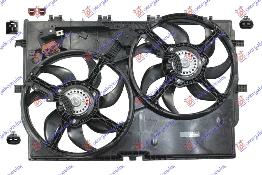 VENTILATOR (DUPLI) KOMPLET (3.0 BENZIN – 2.0/2.3-3.0 DIZEL) (-AC) (390mm+390mm) (2+2 PIN) (2 DUGULJASTA KONEKTORA)